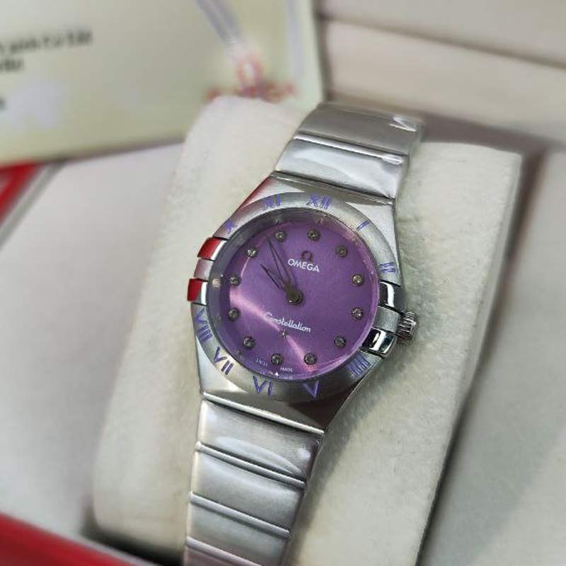 ساعت زنانه امگا تیفانی نگین دار بنفش سیلور Omega